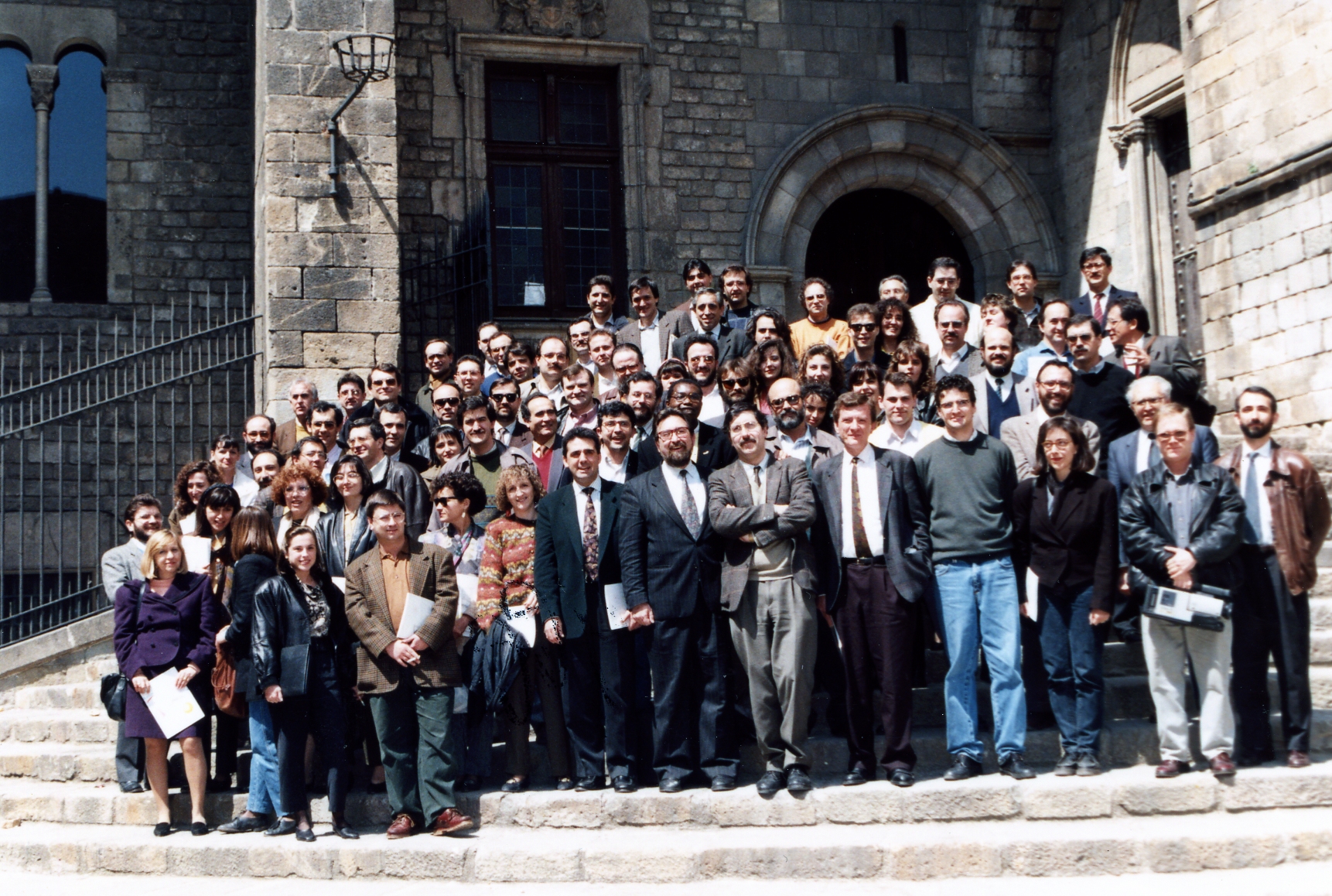 Un dia de començaments de primavera de l’any 1991, el grup de persones que apareix a les dues fotos següents es va aplegar per celebrar el cinquè aniversari del Programa d’Informàtica Educativa. Com que avui fa exactament 35 anys de la publicació al Diari Oficial de la Generalitat de Catalunya del decret de creació del PIE, el 30 de gener de 1986, em permeto penjar aquest post en record i homenatge a tothom que hi va contribuir. Dedico molt especialment aquest record al professor Martí Vergés i als companys malauradament ja traspassats.