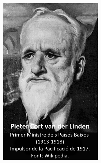 Amb el temps els agents polítics i socials van anar entenent la improductivitat d’aquesta llarga lluita ideològica i política, que instal·lava en la societat un perillós principi de no cooperació i malbaratava l’energia del país (concepte ben aplicable a casa nostra amb contínues lleis educatives que no resolen res d’essencial). El resultat fou que l’any 1917 els principals agents polítics i socials holandesos van acordar la igualtat financera de tots els centres educatius: religiosos protestants, religiosos catòlics, laics d’iniciativa social i públics (de l’estat o dels municipis), aquests darrers naturalment laics. Impulsat pel Primer Ministre liberal Pieter van der Cort, aquest acord es coneix com la Pacificació de 1917. Va ser formalment establert en la Llei d’Educació Primària de 1920 (o Llei de Pacificació) i actualment el recull l’article 23 de la Constitució dels Països Baixos. [7] Cal fer esment que la solució escolar va ser part d’un pacte més ampli entre conservadors i partits liberals i d’esquerra. La igualtat de finançament que van aconseguir els centres religiosos va ser compensada per la generalització del dret a votar dels homes. El de les dones va venir dos anys després. Per un temps curt es va donar l’estranya circumstància que les dones es podien presentar a les eleccions i ser escollides sense tenir encara el dret al vot.